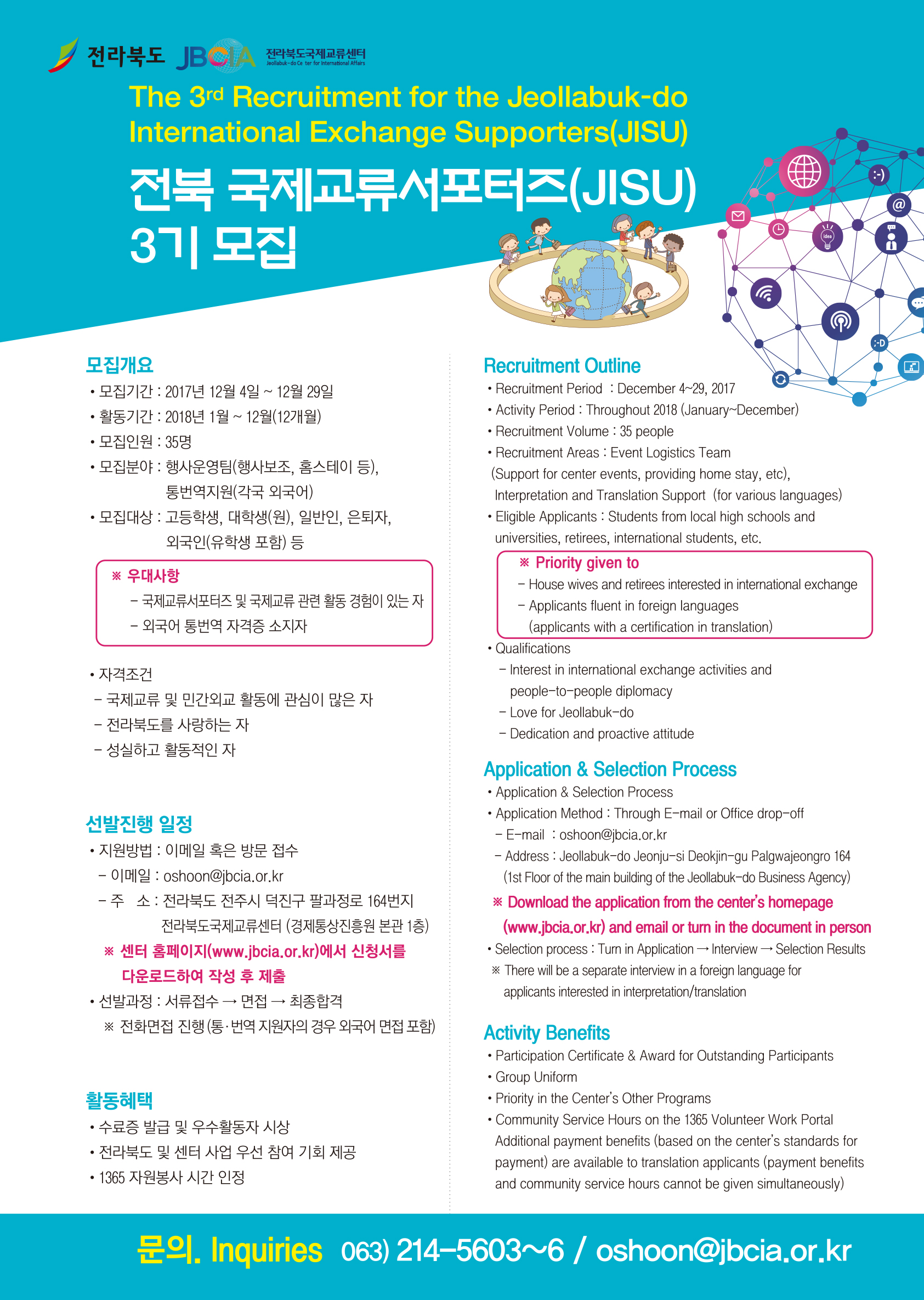 전북국제교류서포터즈(JISU) 3기 모집안내/The 3rd Recruitment for the Jeollabuk-do International Exch..
