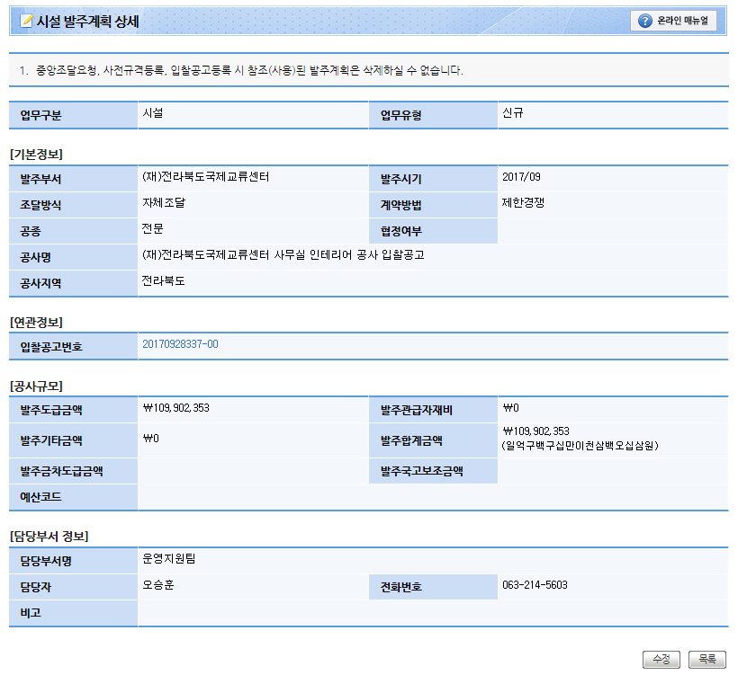 (재)전라북도국제교류센터 인테리어 공사 입찰공고