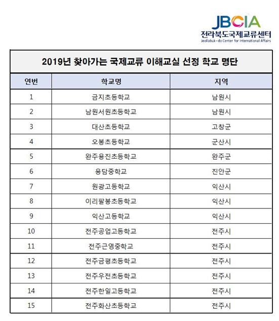 2019 찾아가는 국제교류 이해교실 선정 학교 알림