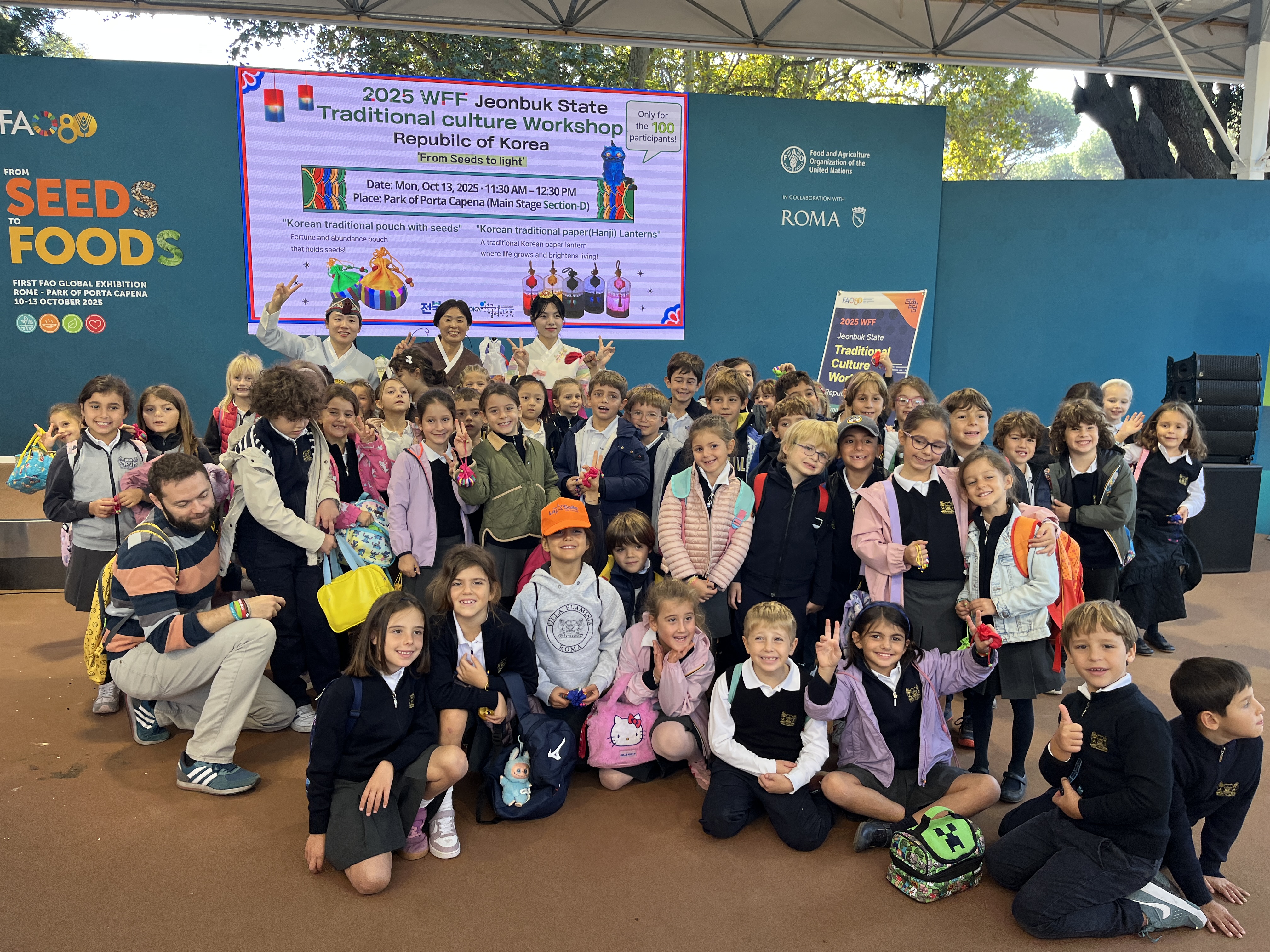 전북국제협력진흥원(이하 진흥원)은 10월 11일부터 15일까지 이탈리아 로마에서 열린 유엔식량농업기구(FAO) 창립 80주년 기념 ‘세계식량주간(World Food Forum)’과 ‘제1회 FAO 글로벌 전시회: From Seeds to Foods’에 참여하여 전북의 전통 문화를 세계 무대에 선보였다.