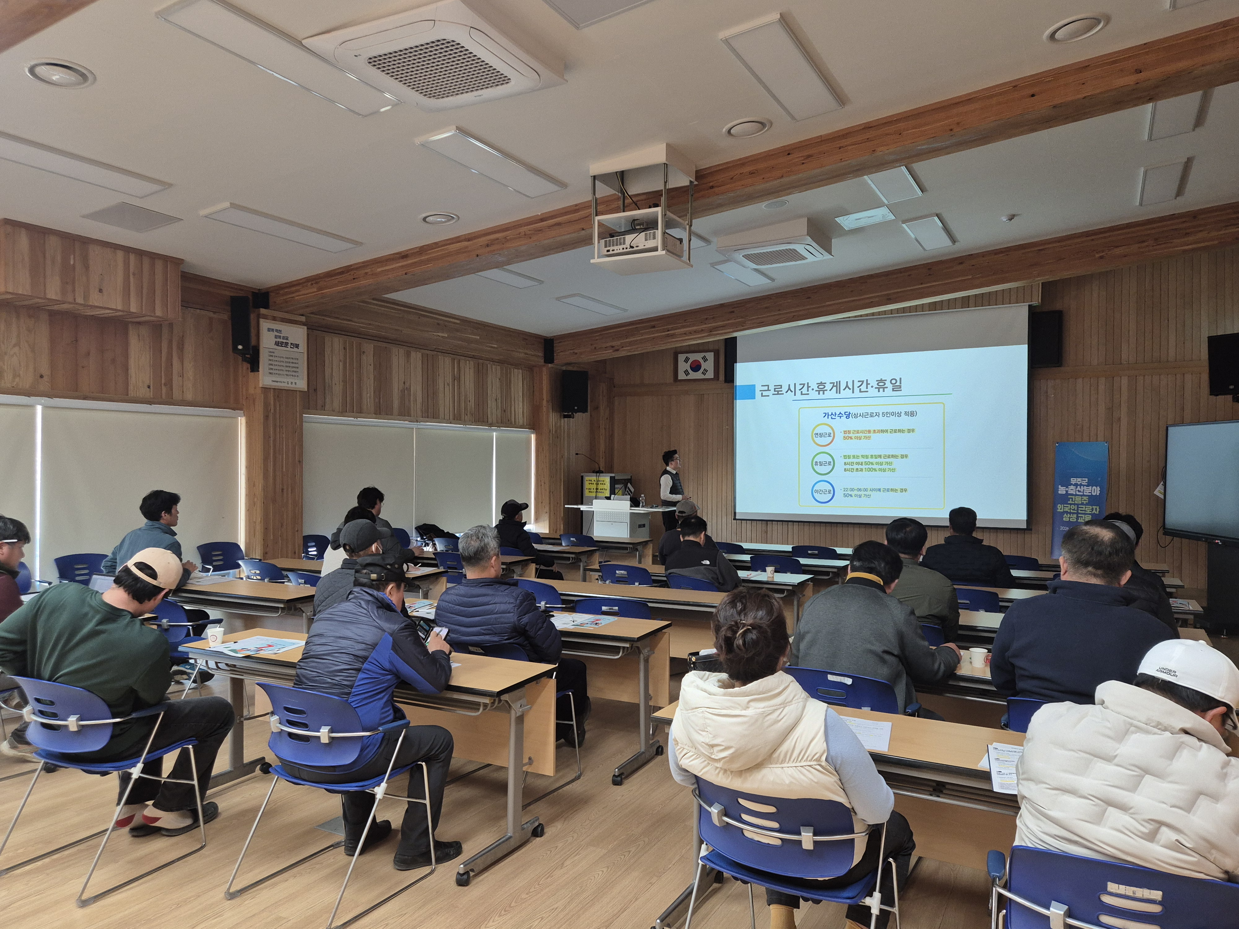 이번 교육은 농·축산업 분야 외국인 근로자 고용주 25명을 대상으로 3월 4일 무주군 농업기술센터에서 진행되었다.